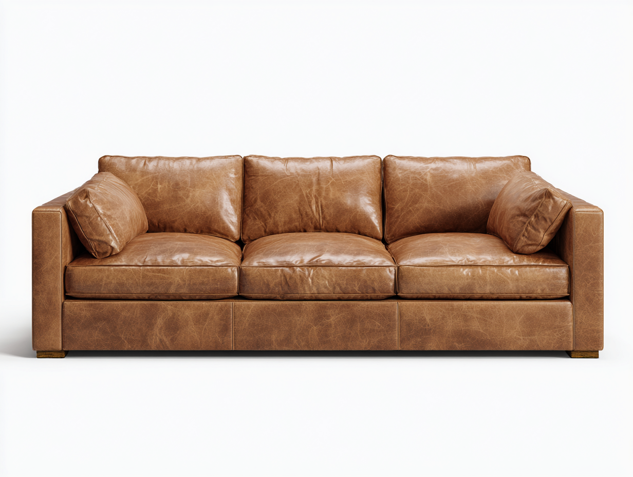 Der Bezug besteht aus Leder in Braun und verleiht dem Sofa eine warme und natürliche Ausstrahlung. Die Oberfläche ist für den Einsatz im Wohnbereich geeignet und lässt sich mit geeigneten Pflegeprodukten erhalten. Die Polsterung unterstützt eine gleichmäßige Sitzfläche und trägt zu einer stabilen Nutzung im Alltag bei.